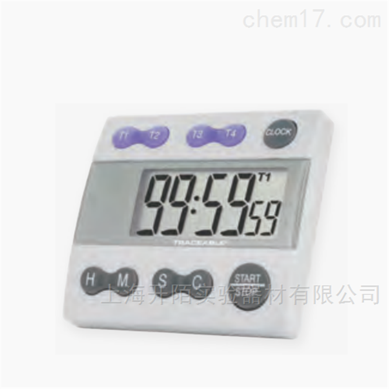 Traceable® 四通道闹铃计时器 倒计时/秒表,暂停/恢复,记忆,报警,12小时/24小时时钟。巨型显示屏有19毫米高,在整个实验室内都能看到